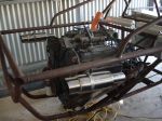 Finally after 12 months of overtime and family duties we had some time to spend on the car. We mounted the motor, gearbox (Kombi until new 1 arrives), oil coolers, mirrors, pedals, foot rest and a few other things