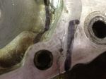 Every few mm opened up huge voids full of oil and crap, inplaces it was honeycomb with weld porosity. The heat from the tig boiled everything into a black sooty mess regardless of the surface cleaning. Stopping every few seconds to clean it off became a pain. You could see "volcanos" erupting in the puddle leaving pin holes and voids behind - MORE LEAKS AND CRACKS TO COME.