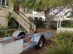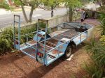 For Sale: Single Axle Buggy Trailer. We sold our Rivmasta a few years ago and it is no longer required. The trailer deck size is 2100 x 4000mm inside the rails. Overall length is approx 5600mm. There is also jerry can storage just behind the axle. Tyres are 30x9.5R15's on steel wheels. Weight I think was 600kg and it is rated to 1980kg. Electric brakes with a controller on the drawbar - so anyone can tow it. The wheel arches are drive over with fabbed in tie down points. Just needs a bit of a tidy up with surface rust etc. We built it in the year 2000.